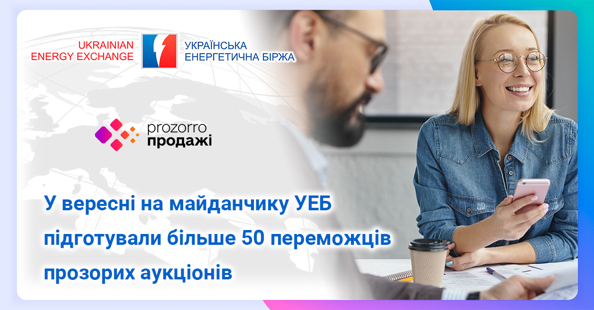 У вересні на майданчику ТОВ «Українська енергетична біржа» успішно підготували 51 переможця аукціонів Прозорро.Продажі за різними напрямками торгів: мала приватизація, з питань...