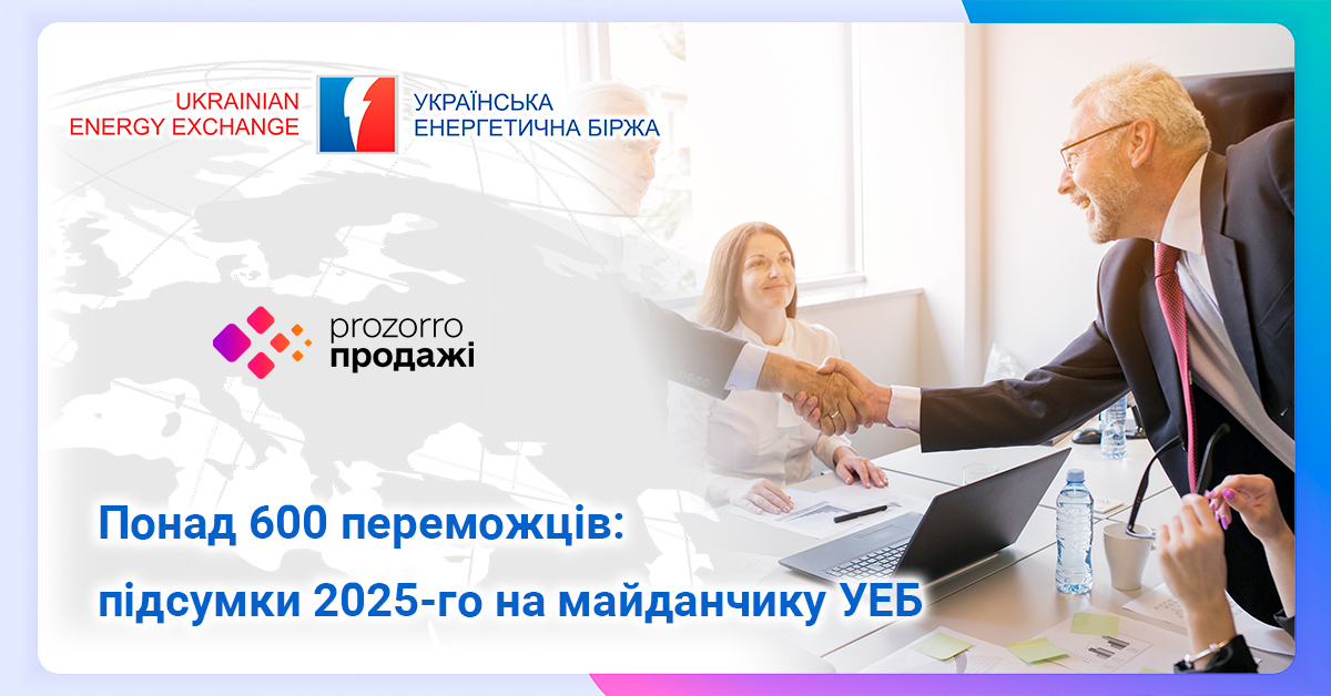 Протягом 2025 року на майданчику ТОВ «Українська енергетична біржа» підготували понад 600 переможців аукціонів системи Прозорро.Продажі. За результатами торгів організатори...